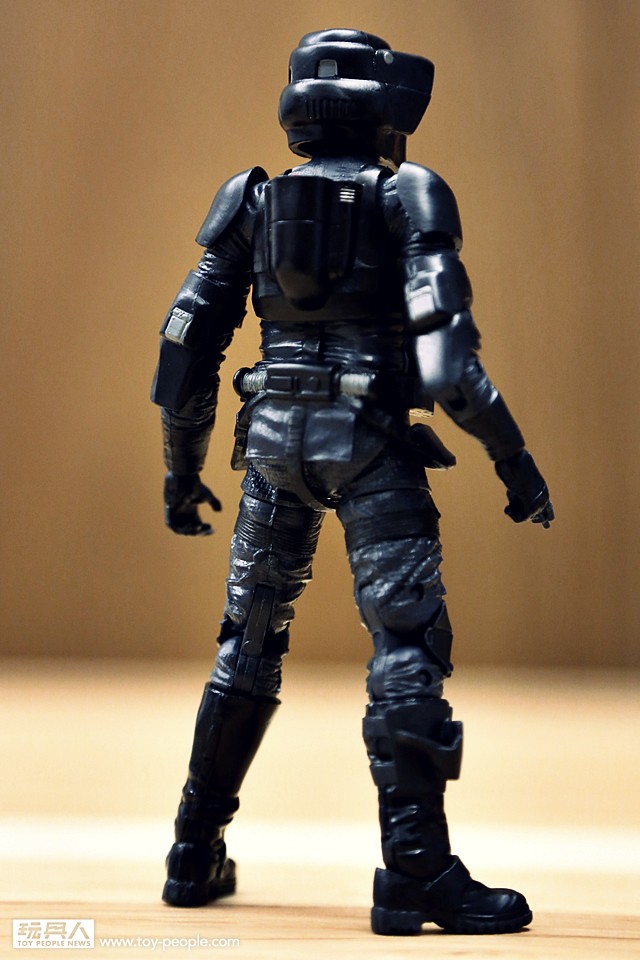 ▼ 人偶造型的完成度相當高,最大的特色在於他擁有代表“指揮官”階級的黑色肩甲。在星際大戰歷史中,不同時期、兵種的劃分,士兵的肩膀會以不同的顏色來區分級別。這是玩具首次立體化闇影暴風兵指揮官,不曉得將來有沒有機會見到其它級別的闇影暴風兵?這樣我們就會有機會辨識闇影暴風兵的階級設定。