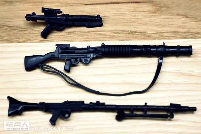 這三把槍械使用了軟性材質製作,優點是在部分姿勢時不會受限於可動性,稍稍讓槍械彎曲來達成某些姿勢,讓姿勢的重現度更加地靈活,但缺點是容易變形。