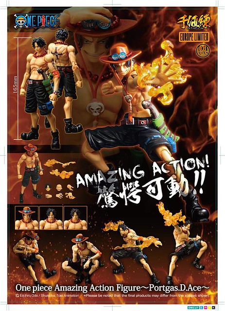 日千值練玩具公司預計明年2015年2月推出Onepiece Amazing Action Figure~Portgas.D.Ace~(EUROPE LIMITED)海賊王 艾斯(歐洲限定)暫時翻譯,有別於MEGAHOUSE玩具公司將在明年推出的Variable Action可動系列,這次千値練ブログ以Amazing Action Figure可動系列首波推出海賊王當中人氣角色人物擁有火焰果實的艾斯。