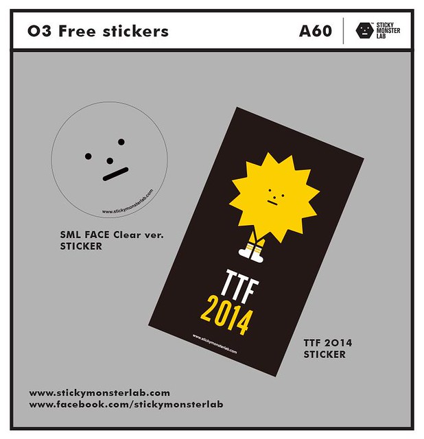 為了這次的2014 第11 屆台北國際玩具創作大展,Sticky Monster Lab 團隊也設計了許多新款的公仔作品,會場也有提供預購的服務,並且也有專門設計一款TTF 限定的貼紙喔!當然,除了預購商品之外,會場也有提供現貨的商品販售,小編溫馨提醒各位玩具人在購買Sticky Monster Lab 的商品之後可以請求看看設計師願不願意幫你畫個可愛的小圖!一起來期待吧!