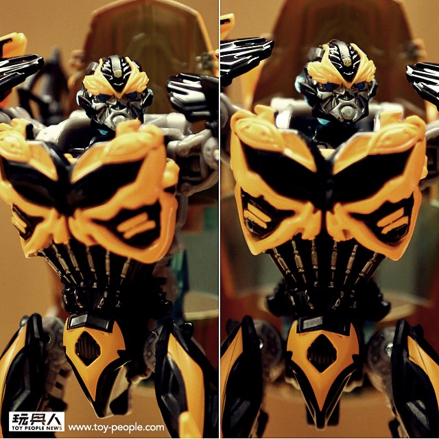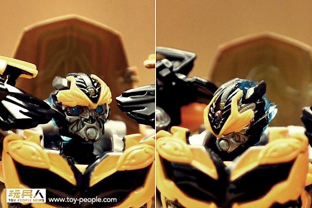 ▼ 令“大黃蜂”的臉部看起來就像是真的“大黃蜂”的面罩也調整了配色。並且使用了銀色塗裝取代了先前的銀色塑膠材質,更加具有金屬感。