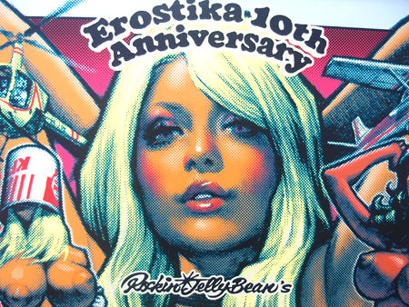 知名的蒙面插畫家Rockin'Jelly Bean 的授權商店Erostika,前幾天才熱熱鬧鬧開心結束了10 週年紀念派對,在現場販售的50 張限定版一開店就銷售一空。今天Erostika 趕緊推出了這一款深受喜愛又極具紀念價值作品的2 次配色版本!