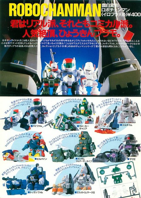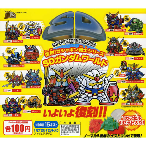 另一方面,轉蛋玩具的掘起,也帶動了SD鋼彈的風行。1985年,第一代SD鋼彈轉蛋戰士(SDガンダムワールド ガチャポン戦士)登場,因為轉蛋空間有限,這種矮短造型最適合也不過,一蛋一個剛剛好,再加上容易入手的低價位,吸引了許多小朋友們爭相收集。