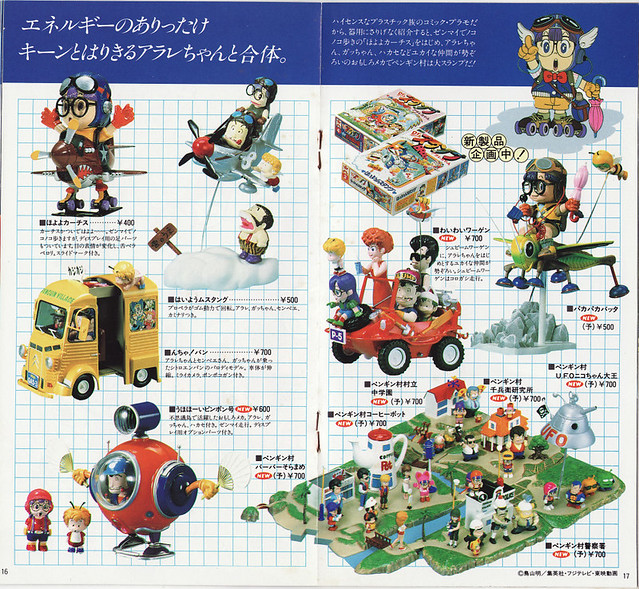 ▼ 萬代1982年的產品型錄,可以看到當時新發售的阿拉蕾組合模型,人物造型都是可愛的二~三頭身,圖中的這幾組模型,現在都已經是超級夢幻逸品了啊。
