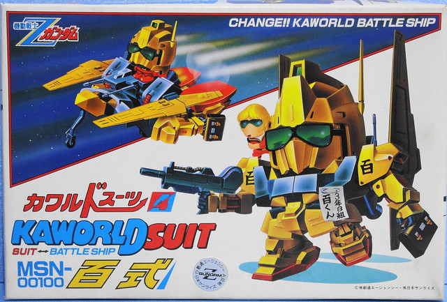 ▼ 1985年的KaWorldSuit(カワルドスーツ)系列百式,和超力Robo Galatt一樣是通學用機器人,背書包、戴墨鏡,可以變形為飛行載具上學去,三年B組,你跟周杰倫是同學吧?