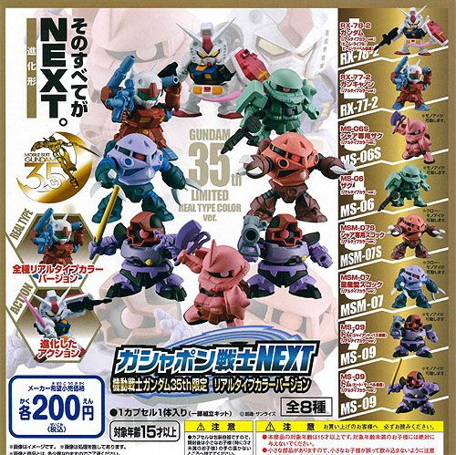 ▼ 轉蛋戰士NEXT鋼彈35週年限定版,一口氣推出8款一年戰爭中登場的人氣MS機體,可動及塗裝的完成度相當高。