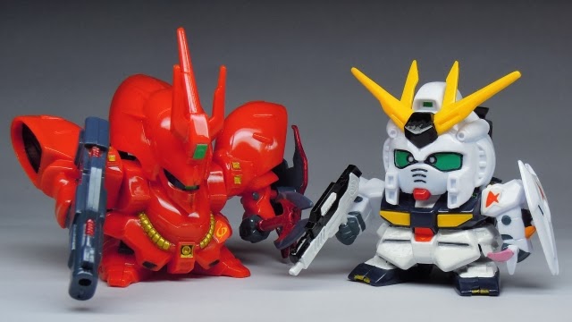 ▼ 第7彈開始,BB戰士系列改頭換面,取消了BB彈的設計,改為小口徑的細長型子彈,以符合原作比例的武器設計。而角色比例也從2.5頭身改為2頭身,看起來更加嬌小可愛。第7彈和第8彈分別為沙煞比(左)與ν鋼彈(右)。