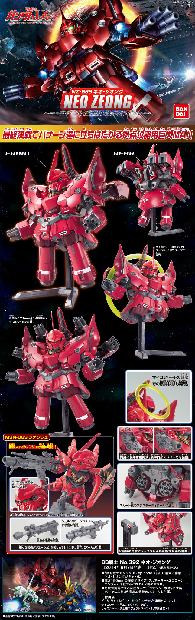 ▼ BB戰士No.392新吉翁克,風靡萬千少女、改善社會風氣、提高青少年內涵的大熱門機體,可以和「新安洲」一起玩「新新合體」,也可以和任何尺寸適中的不明物體進行「紙灰挺組合」,適合永遠有新玩法的聰明人。