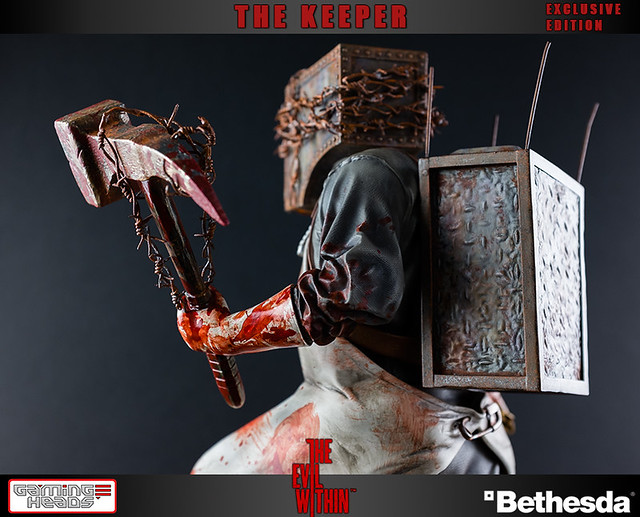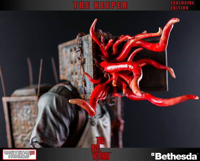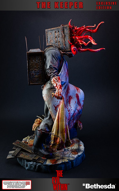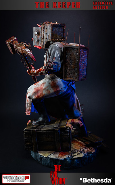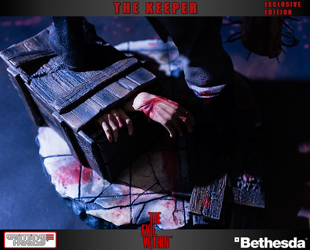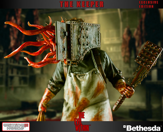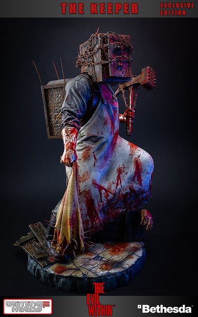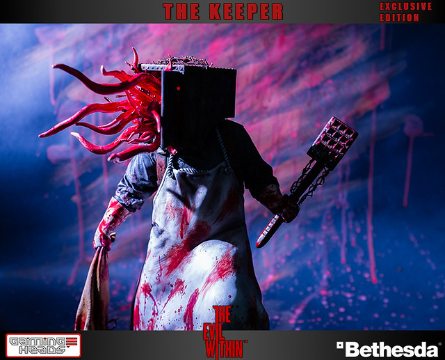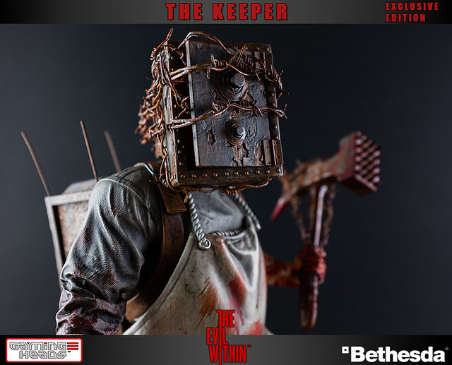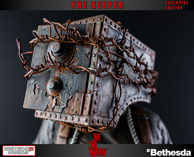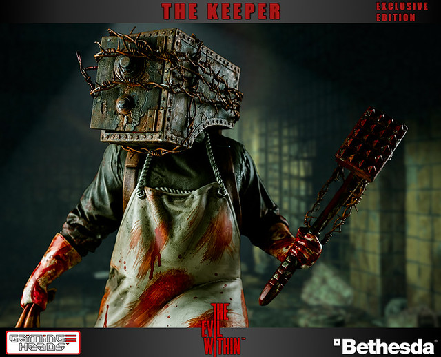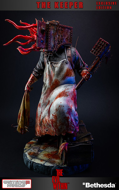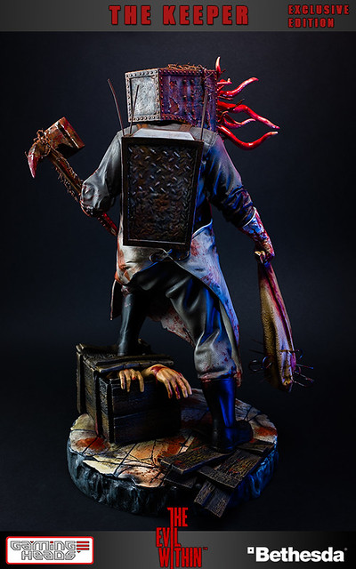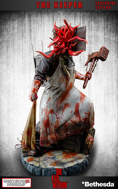 由惡靈古堡之父三上真司所參與製作的恐怖生存遊戲「邪靈入侵(THE EVIL WITHIN)」在本月終於上市了。本作品雖然評價兩極,但在上市前所公佈的宣傳影片中,獨特的怪物THE KEEPER因為設計相當優異,還被特別製作特輯介紹,相信很多玩家都對它印象深刻吧!現在GAMING HEADS決定將它推出立體化雕像囉!THE KEEPER最獨特的就是那像保險箱的頭部,用鐵刺網牢牢捆住,還有幕就是他拿著鐵鎚邊敲頭邊走向主角,十分詭異恐怖。另外像是屠夫的裝扮,身上滿佈血跡污漬,十分逼真駭人。手上拿著謎一樣的袋子被釘子穿刺,還有地台上露出斷臂的木箱,種種細節都十分讓人感到莫名恐懼。潮濕的地台也很有原作建築的風格,整體作品相當成功的把原作設定再現,是不可多得的優異作品。如果您購買限定版,還有額外一款血紅觸手冒出的頭部可供替換,有興趣蒐集可要特別留意喔!