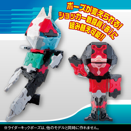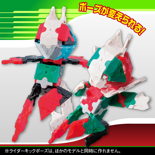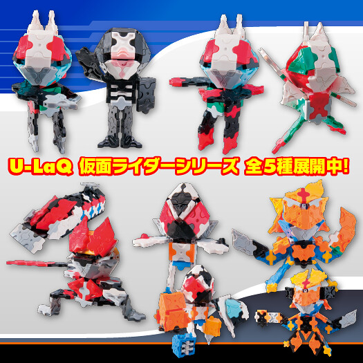 益智玩具公司ULALACUBE其下立體拼圖U-LaQ將於本月份推出假面騎士系列。首波收錄了「假面騎士新一號與修卡戰鬥員」、「假面騎士凱武」、「假面騎士新二號與V3]、「假面騎士電王」以及「假面騎士 fourze」共五款。雖然是益智玩具,但是在造型巧思上也下足了功夫,有的動作可以變換,有的則是可以搭配武器配件等等...有興趣的玩家不妨買回家挑戰看看喔!
