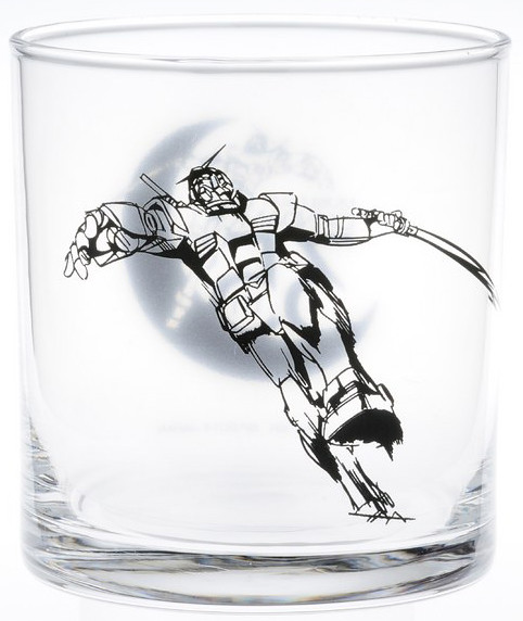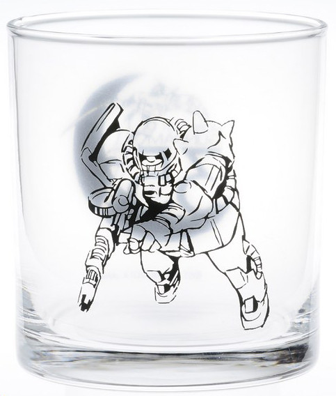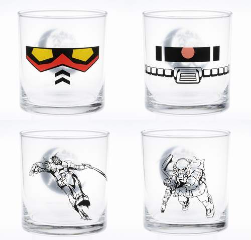 以鋼彈、薩克的臉譜作為發想,設計為圖樣;另外還有使用經典場面設計的玻璃杯。