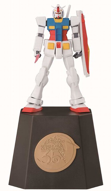 將鋼彈魅力的細節高度再現的寫食玩偶,台座搭配了35 週年紀念LOGO。全高約22.5cm。