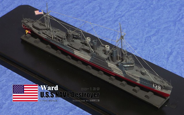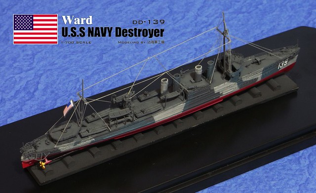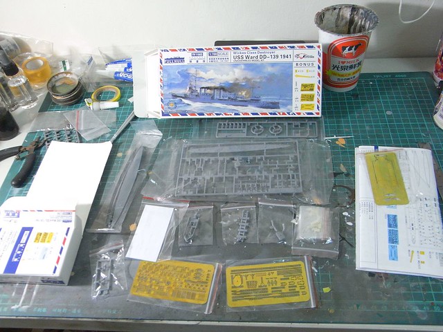 大家好,我是詹波,興趣是軍艦模型,這回製做的是鷹翔推出的1/700美國驅逐艦DD-139沃德號,開工前先把版件攤開,由於是限定版,所以盒裝內除了塑膠零件外也有不少蝕刻片,是全長約13公分的小品題材。