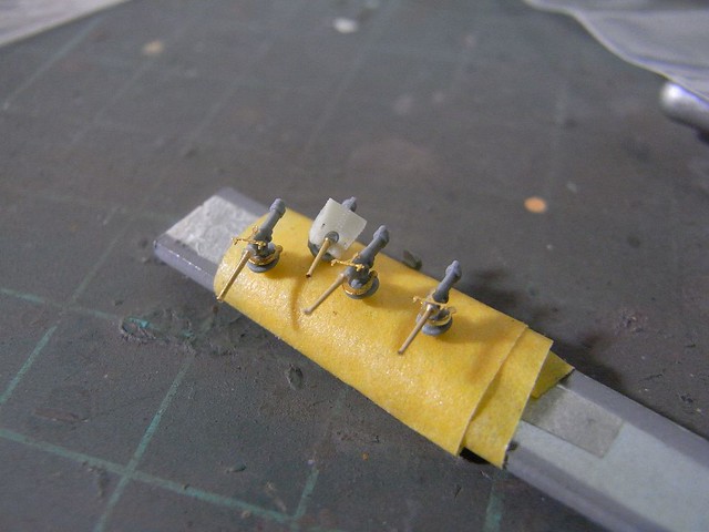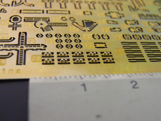 ↑ 首先將纜樁一顆一顆黏上蝕刻片,一顆纜樁直徑約0.7mm,若一個不小心遺失了就前功盡棄,因此必須屏氣凝神完成它。