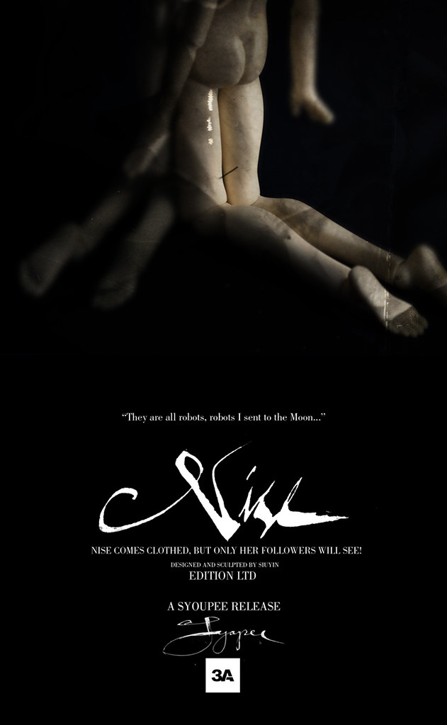 threeA 全新全新女偶系列「SYOUPEE」繼日前推出了第一款「The Sleeper」作品之後,由新銳設計師SIUYIN 所設計「SYOUPEE」系列的第二款作品「NISE」也將在今年2014 年10 月31 日萬聖節當天限量販售囉!threeA 公司全新的SYOUPEE 系列作品是極具迷濛美風格的女偶作品,採用球狀關節,搭配著專屬於設計師SIUYIN 個人風格的色彩,這也將12 吋女偶作品開創出不一樣的造型。