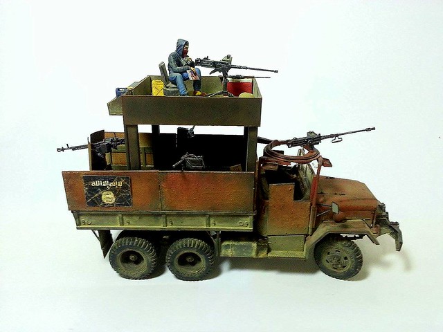 什麼叫GUN TRUCK?就是在一般的卡車的車身上加上厚鋼板及機槍,是一種以最低的成本,製造出兼顧防禦及攻擊力的裝甲車。