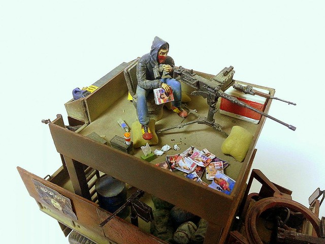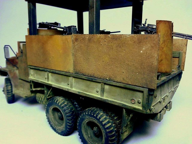 這次的設定是雙層的卡車,1樓安排四挺機槍, 2樓則當做哨塔。