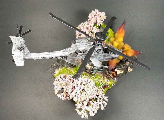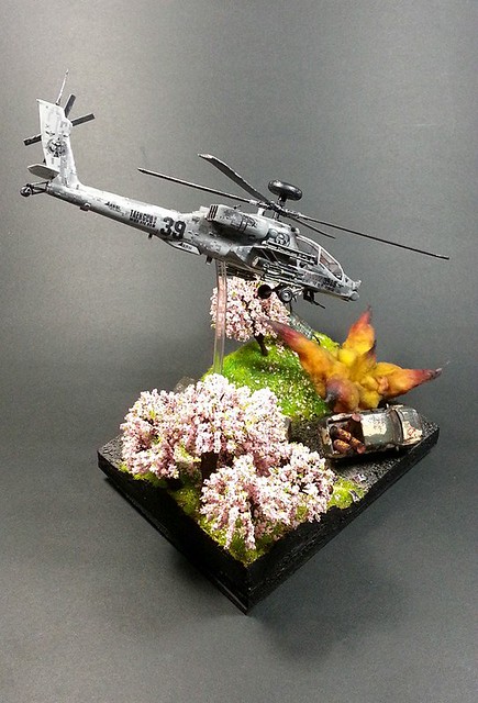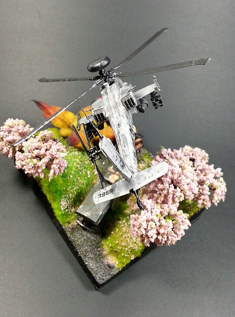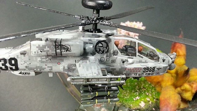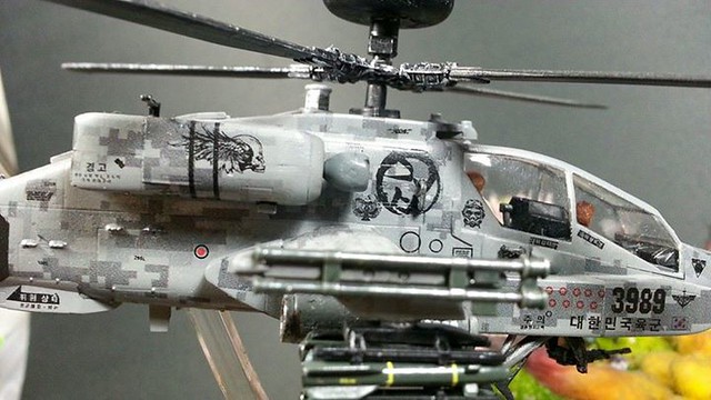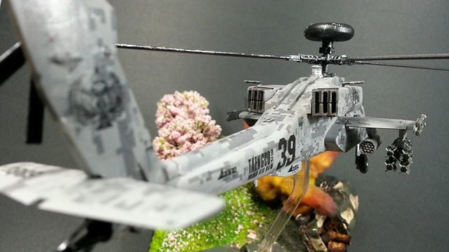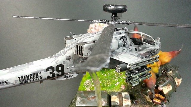 這次的主角是AH64D長弓阿帕契攻擊直升機,我是以自制水貼的方式為它穿上了數碼迷彩,基於我比較喜歡在自己的模型上保持個人風格所以就決定讓它穿上數碼迷彩。數碼迷彩水貼和飛機上面大大小小奇奇怪怪的水貼都是自製的,在AI裡面設計出來然後用ALPS打印機打印出來。我花了9個小時才把數碼迷彩水貼貼上去 T.T