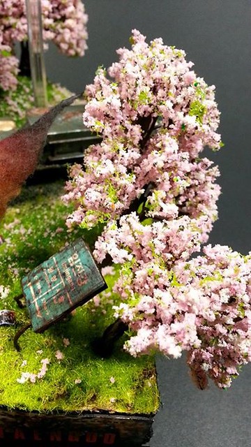 這次我用跟以往不同的手法來製作這個場景,我以往的場景風格都是以暗色系為主,這次我加入了色彩繽紛的元素,比如櫻花樹和草地等等,讓整個場景看起來不會太過鬱悶。
