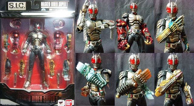 ▼ SIC系列假面騎士超一號。他不但是為了宇宙任務而接受改造的強化人,同時也是習得赤心少林拳的拳法高手,擁有五種不同屬性的手套,可以因應不同條件使用各種不同能力,包括銀色超級手、紅色動力手、藍色電擊手、綠色冷熱手、金色火箭手。等一下!冷熱手不是應該算兩種才對嗎?