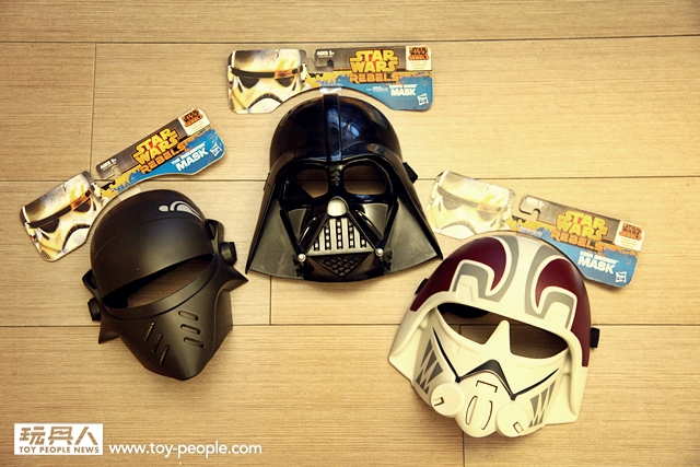 《星際大戰》能夠角色扮演的系列商品,一直是相當熱門的題材,《星際大戰:反抗軍起義》播放之後,當然也就順勢推出了相關的精彩變裝作品,內容包含了三款面具:主角艾斯納、大反派帝國判官以及黑武士達斯‧維德。雖然這三款面具採用的是兒童的尺寸,不過造型非常的講究原作的設計,並且使用了具有強韌特性的材質製作,不容易損壞。