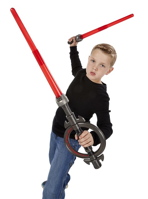 另外,光劍的部分則是推出了價格親民又耐玩的Ultimate Lightsaber FX 系列,收錄了歐比王(藍色)、黑武士達斯‧維德(紅色)以及帝國判官的特殊雙頭版本。光劍搭配了發光與動態感測的效果,能夠模擬光劍開/關的動態、揮舞光劍以及光劍砍擊時的聲光效果,並搭配了考究原作造型的光劍劍柄,原作氣氛十足!~ 採用了耐打的材質製作,可以盡情地把玩與揮舞,這是一款想入手光劍、但又不想花大錢的初級款式,相當值得入手喔!