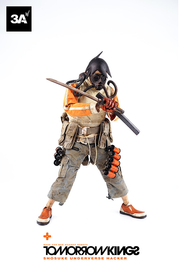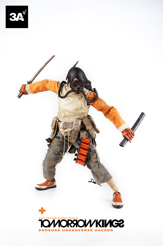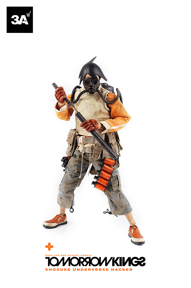 今年初,threeA 日本代理商GOOD SMILE 推出了Wonder Festival 限定的「KOZO TK UNDERNAUT」作品,這也是第一款帶著雙鼻防毒面具的TOMORROW KINGS 作品!有別KOZO TK 的紅衣紅髮造型,threeA 公司將在2014 年11 月14 日星期五推出BAMBALAND 網路商店pre-made 限定販售的「Shosuke TK」!