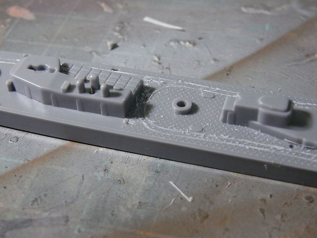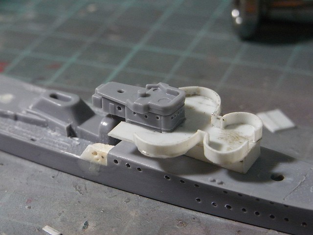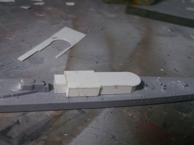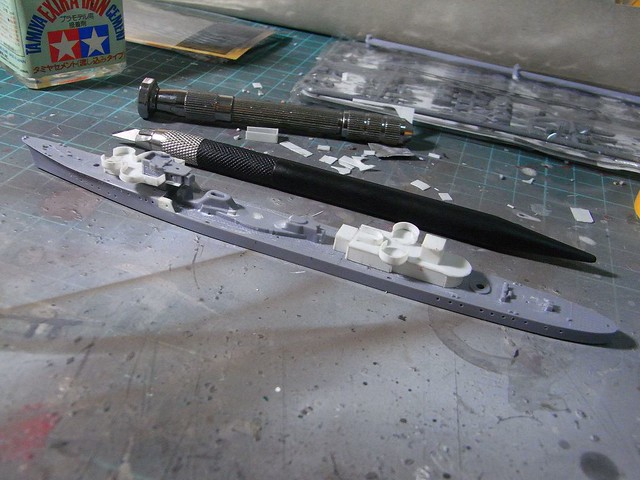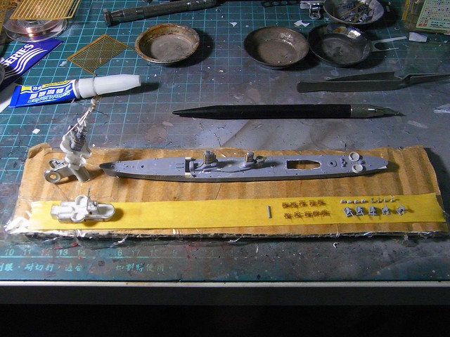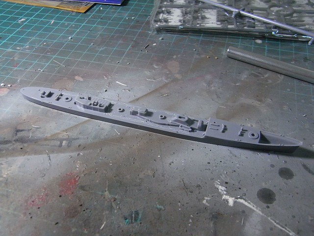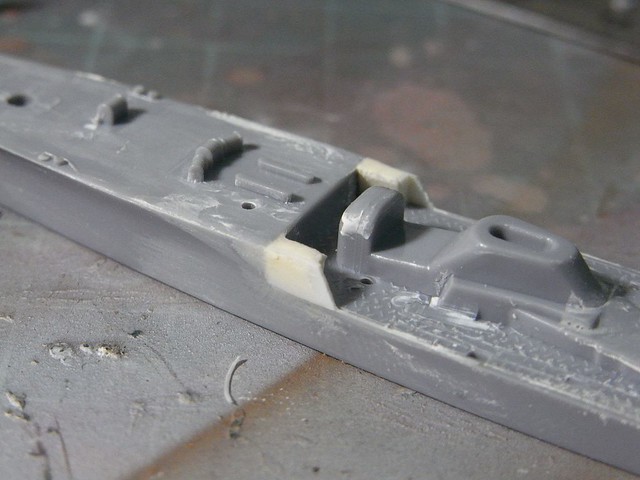 ↑一開始先修整艦身,使用的素材為Aoshima 1/700驅逐艦磯風套件