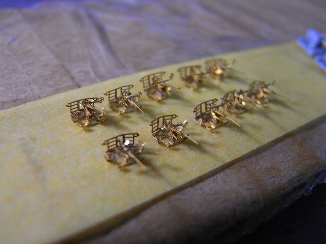 ↑蝕刻片波夫斯單裝40mm砲,每一挺的大小都小於0.5mm,是辛苦的作業。