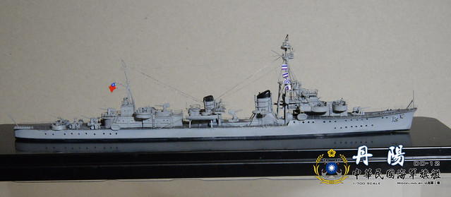 各位好,我是詹波,興趣是軍艦模型,這回投稿的是1/700比例,中華民國旗艦「丹陽號」,有關丹陽,是國府接收自日本陽炎級驅逐艦「雪風」重新改裝而成的一艘軍艦,丹陽成軍時,在50年代安裝日製武裝,到了60年代則改裝成美製武裝,本作即為後者美製武裝時期: