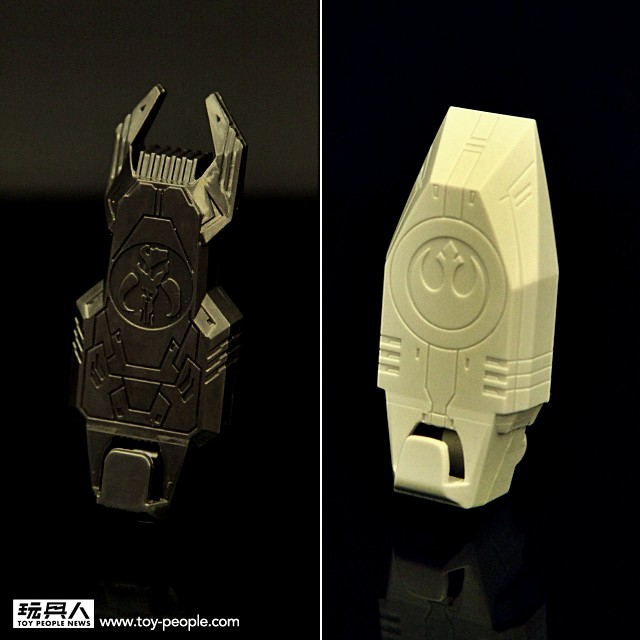▼ 帝國、反抗軍雙方各自擁有三架載具,並各自附有一款迴力車引擎,讓載具能夠出擊去消滅對方的士兵。兩款引擎都擁有各自的造型與圖案,反抗軍使用的是王牌飛行中隊“俠盜中隊”(Rogue Squadron)的LOGO,而帝國使用的卻不是帝國的LOGO,而是賞金獵人“波巴‧費特”(boba fett)的LOGO,難不成這一位經典反派將會在《星際大戰:迷你戰爭》系列第二波商品中登場?!