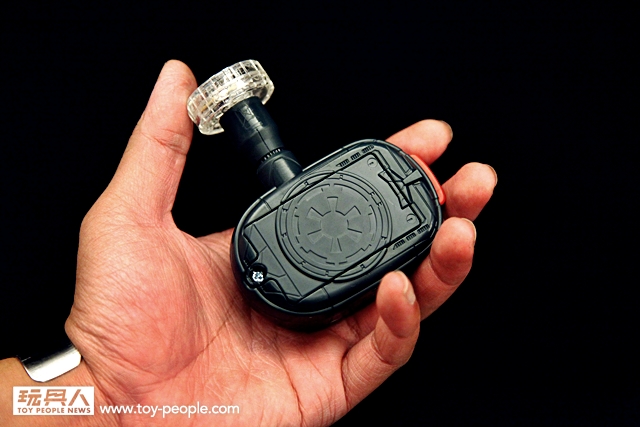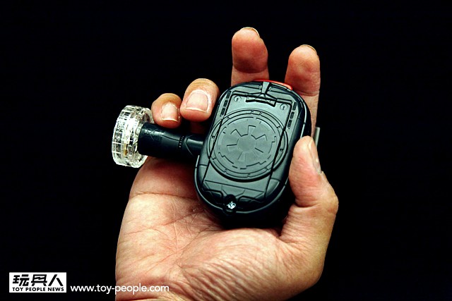 ▼ “原力”控制器,設計的很像是戰艦的操縱桿,戴在手上之後就能夠藉由不同的手勢來操控“滅星者號”,控制器上使用了相當具有《星際大戰》的風格裝飾,並加上帝國的符號,氣氛滿點~