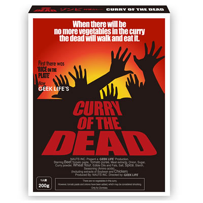 創意世界什麼商品都不奇怪!日本株式会社ノーツ (GEEK LIFE)近日公開了聯名新作品「殭屍對策咖哩(暫譯)」(ゾンビ対策カレー CURRY OF THE BIOHAZARD グリーンハーブ回復カレー),包裝上使用了遊戲一代最經典的殭屍回眸一笑圖案,設計文案上還強調 生化危機回復藥草入料,遊戲迷豈能錯過??雖然實際上是綠咖哩雞肉口味,但是吃起來就是特別刺激啊!另外也有向殭屍經典電影海報致敬的活屍咖哩(CURRY OF THE DEAD(カリー・オブ・ザ・デッド)),特別強調色彩、調味是殭屍也很愛吃的口味,提供給大家參考唷!