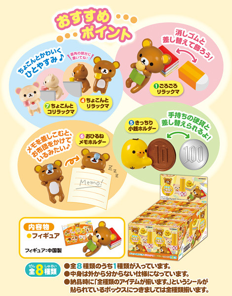 玩具新聞 盒玩 RE-MENT 拉拉熊 拉拉熊「桌上的悠閒生活」盒玩推薦! 玩具課長 2014-11-21 21:34:30 分享 ✕ 分享 已複製網址 分享到 Facebook 分享到 LINE 分享到 Reddit 分享到 Twitter 分享到 Plurk 分享到微博 還記得小編曾說過,桌上機能型玩具近期大流行嗎?以杯緣子來說,發售總數就已經突破650萬個囉!現在RE-MENT也趕搭這股風潮,推出拉拉熊的桌上機能玩具盒玩「拉拉熊「桌上的悠閒生活(暫譯)」。收錄共8種類,包括可以裝飾桌腳、螢幕邊角的攀爬拉拉熊、可收納印章、可貼提醒便利貼、可以放置名片或躺在橡皮擦上等等,相信可以用療癒的魅力舒緩上班族緊繃的神經喔!提供大家參考! リラックマ「デスクでごゆるりリラックマ」盒玩共8款。每盒日幣售價380日圓(未稅),預計2014年12月初推出 哪裏買? 工具 Where to Buy ? TOOL! 玩具課長 十分老實的上班族,夜夜入眠想著的都是玩具公仔... 如果你也一樣睡不著,歡迎加入玩具人!