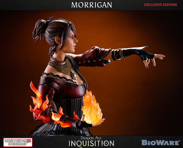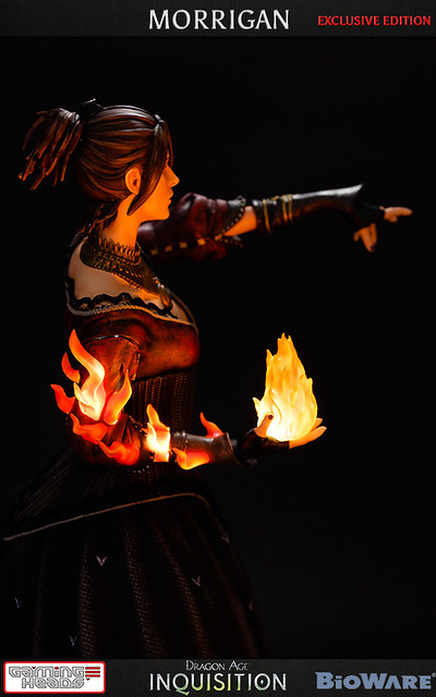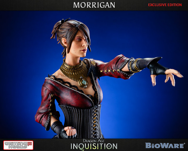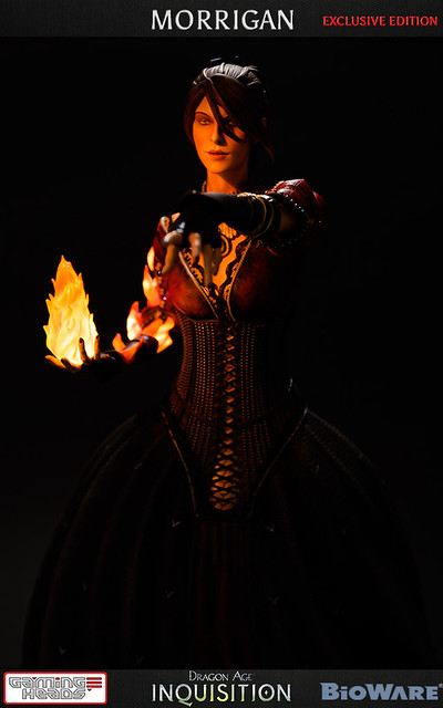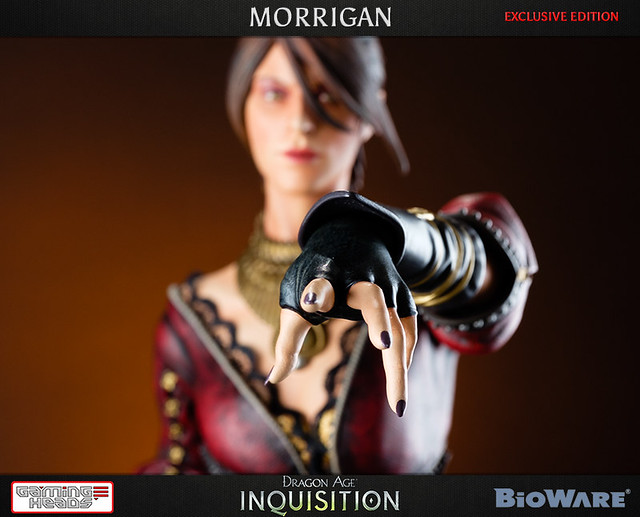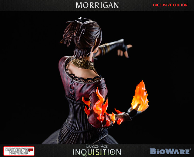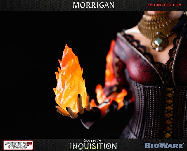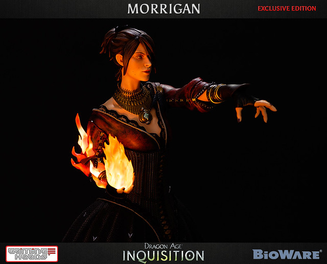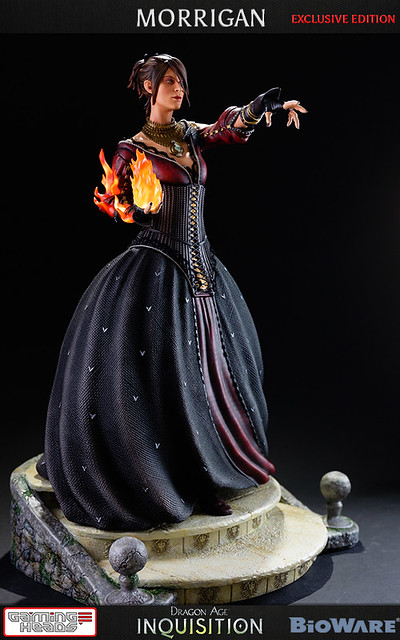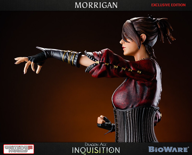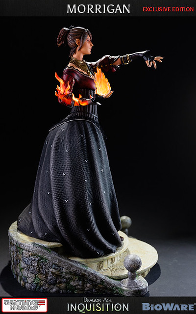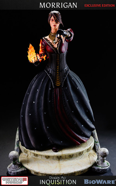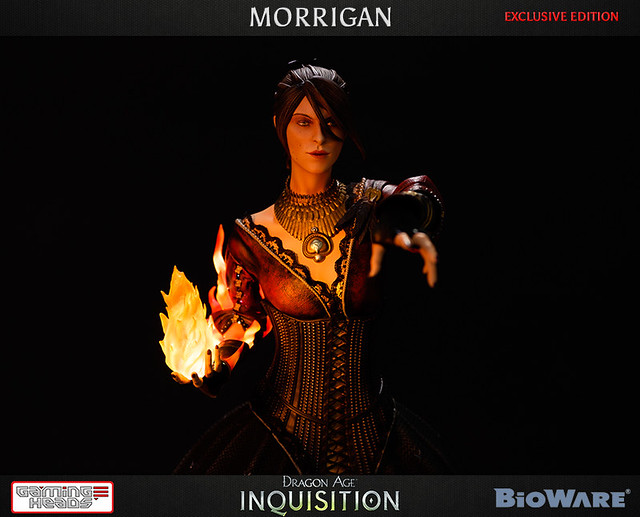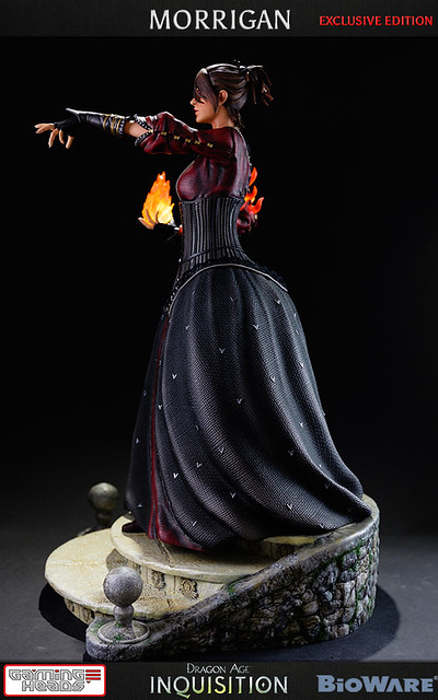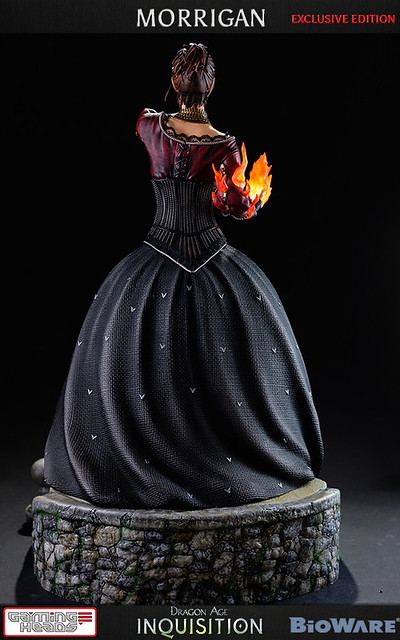 人氣奇幻RPG闇龍紀元(Dragon Age)將推出 荒野女巫 莫莉根(Morrigan)雕像。莫莉根是傳說女巫Flemeth的女兒,原本離群索居住在幽深的森林沼澤,因緣際會加入了主角的冒險行列。莫莉根擅長魔法與變形術,角色設定上非常獨特,但更吸引人的是她奧嬌的性格,讓她成為遊戲中相當有人氣的魅力角色。本作品在設計動作姿態時,就納入了她的特性,設計成類似女帝一樣居高臨下的命令姿態。如果您選購限定版,右手還可以切換成有火焰法術特效的模樣。雖然是女巫,但是服裝設計十分典雅,站在石台上有種貴氣感,與角色的個性相當搭配。身體是以玻璃纖維製成,但是服裝是以纖維布料製成,讓作品的存在感與細緻度大幅提昇了!,有興趣的電玩迷可以參考看看喔!