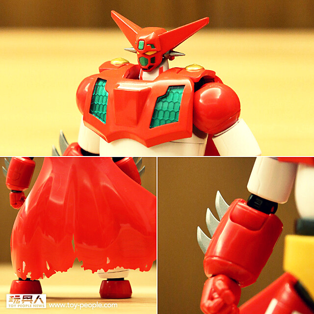 ▼ 本體的大幅更新也是一大賣點!胸口使用了透明零件製作,更加增添了造型深度與帥氣;除此之外,耳部的天線造型、手臂的彎刀為了能夠在造型上更加細緻的呈現,而非常的銳利!說明書上也特別提示到要小心。最後是披風,尾端的破損與整體飄逸的質感相當的逼真、具有氣勢!