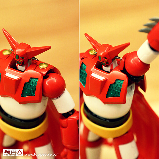 ▼ 這一款作品的另一個賣點,就是在肩膀的上端製作了開關式的關節,平時關閉能夠維持造型的完整性,而高舉手臂時能夠打開而不讓肩膀影響可動性。