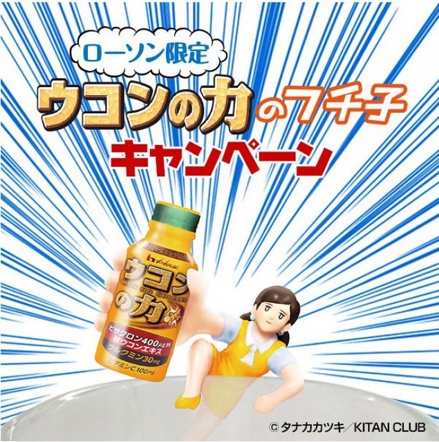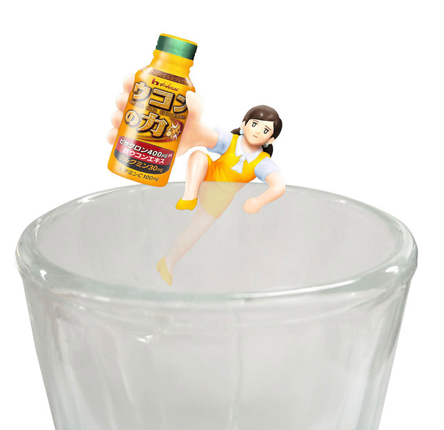 大人氣、創下空前銷售紀錄的轉蛋玩偶「杯緣子」(コップのフチ子),將在日本推出與知名的健康營養補充、解酒飲料「薑黃之力」(ウコンの力),推出LAWSON 便利店限定、充滿漫畫張力的聯名版本。