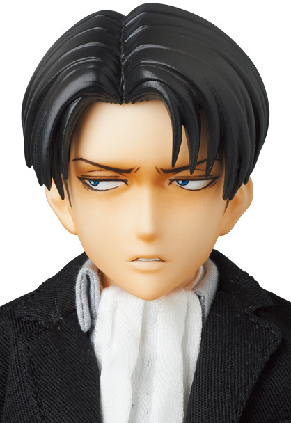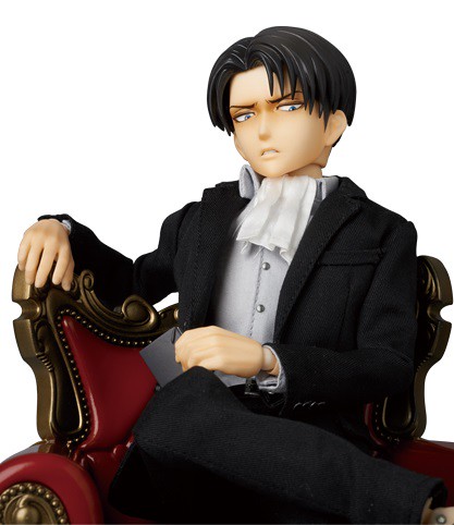 MEDICOM以預計在2014年12月發行RAH 進擊的巨人 里維,這次推出紳士服版本的里維附有PVC製頭部、2種類的表情配件可以替換,和附有約五種類瞳部配件可以替換、以搭配不同顏部配件組合「睨み」「見下し」等等的表情再現劇中的模樣,和附有「手帳」「小銃」「沙發椅」「茶杯」等等配件,尺寸高約有30公分,售價約23,600元日幣,提供給喜歡進擊的巨人的玩具人可以參考一下。