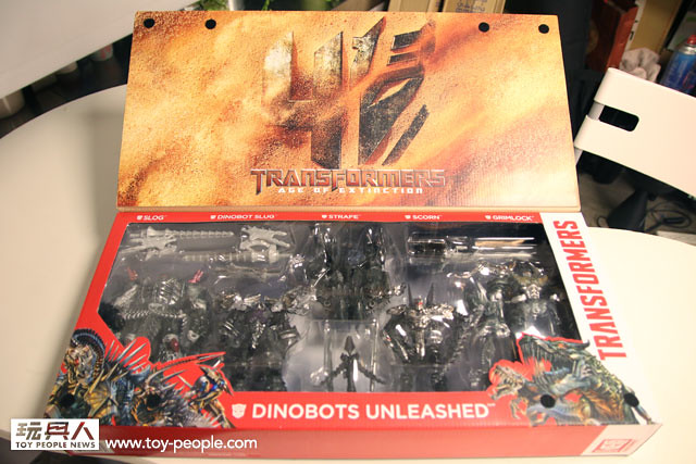 不讓博派五人組專美於前! 在變形金剛4-絕跡重生電影中大放異彩的恐龍金剛(Dinobots)們,這次也推出了全新的白金禮盒包--”暗黑豪華組精裝版 五人組”!~新版本大幅使用了透明材質+電鍍舊化質感,整體呈現與原本鮮豔塗裝截然不同的暗黑淬煉調性! 趕快隨小編來開箱吧!!
