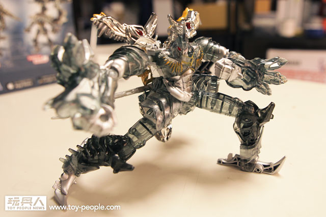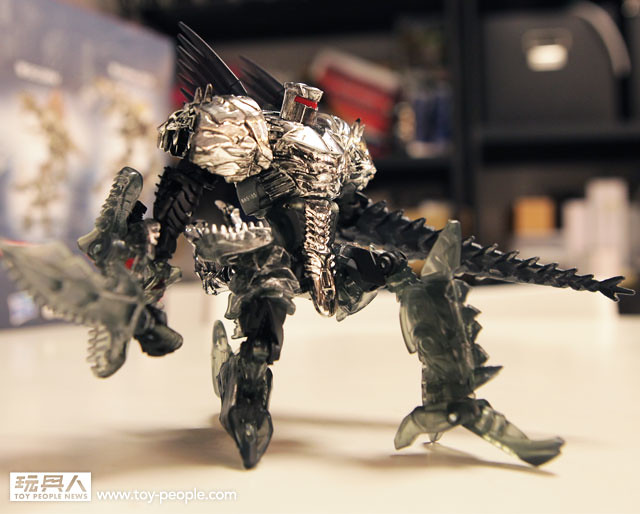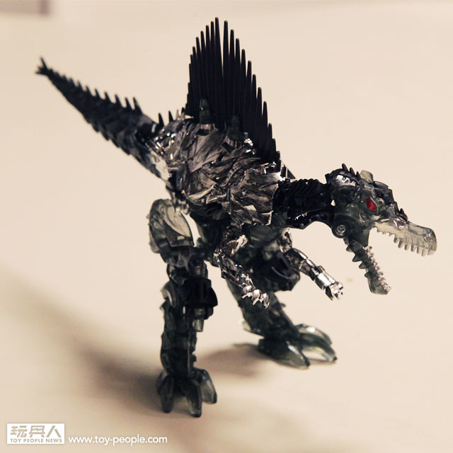 ▼ 變形成霸王龍型態,銀亮的電鍍塗裝搭上烙黃點綴--完全重現電影中的桀傲不遜 !