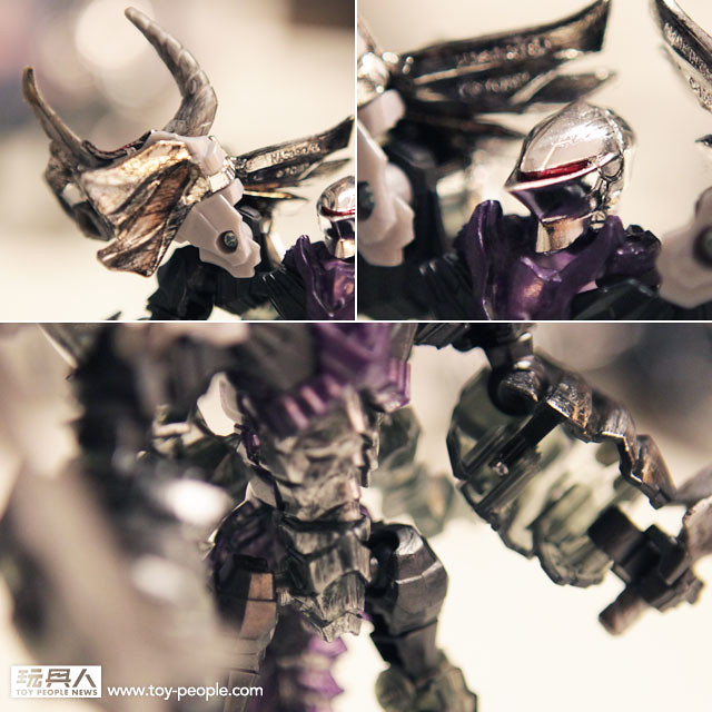 ▼ 三犄龍頭展開成雙肩,臉部亦是標準中古騎士頭盔,電鍍的刷色讓身體中樞部位的紫色有了連貫性,驚艷!!