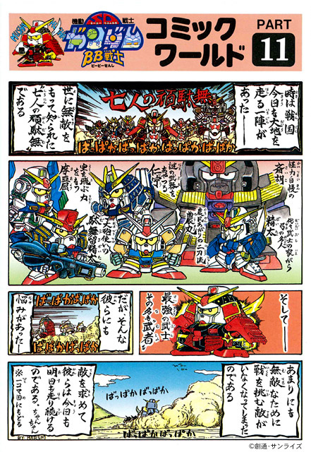 ▼ 除了BB戰士說明書中的短篇漫畫之外,同時在漫畫月刊《Comic BomBom》上連載的《SD武者頑駄無風雲錄》,進一步描繪了SD武者鋼彈的故事,補足了短篇漫畫中交待不清楚的細節。