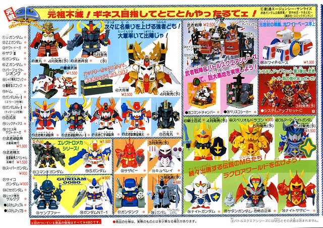 ▼ 武者鋼彈的風行,除了模型、玩具、萬變卡等各類遊戲商品以外,更曾經在1989-90年間推出數部OVA及動畫電影。而另一個和BB戰士同樣受歡迎的「元祖SD鋼彈」系列,也推出許多SD武者模型,尤其是其中的「武者戰陣」和「天地城」,更是許多SD鋼彈迷追逐了一輩子的超夢幻逸品。