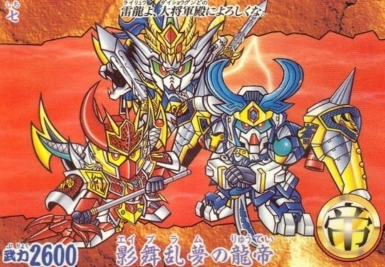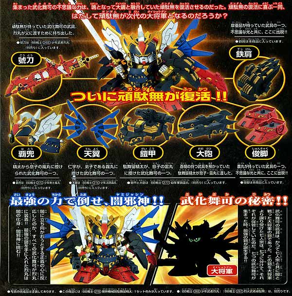 在《SD戰國傳》中,率先登場的大將軍其實是二代目,到了第三部《天下統一篇》時,才以時空回溯的方式,交待了初代大將軍的身世。而武者頑駄無因為在《武者七人眾篇》表現不錯,最後也被提拔為三代目大將軍,這等於是立下了最佳典範,告訴後輩:只要苦幹實幹,每個人都有機會當上大將軍啊。