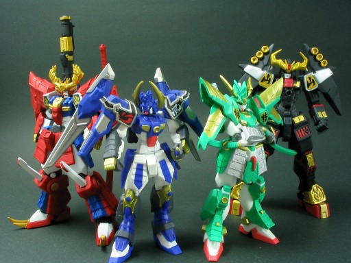 ▼ 《傳說之大將軍篇》的轟天頑駄無(後),在惡無霸域夢山中得到傳說中的「三烈神之鎧」,授與武者衛府弓銃壹(中)、月光(左)及流星(右)三人,並賦予他們烈光、烈破、烈空的稱號。只要買齊四組,就能完整著裝,換下來的鎧甲可以裝在轟天頑駄無身上,根本就是移動鎧甲台啊你。