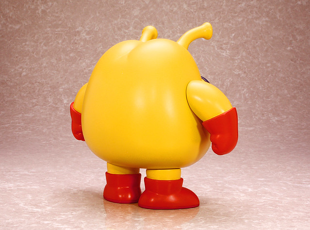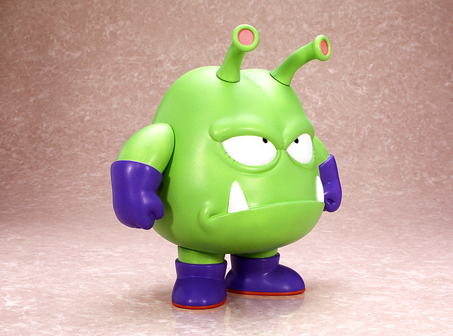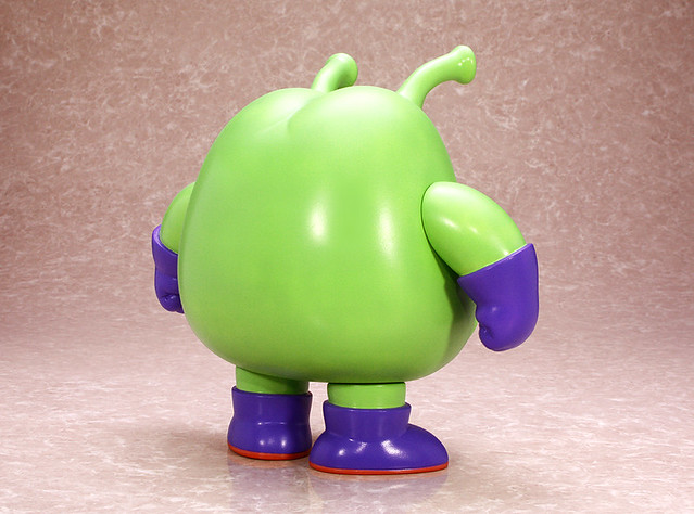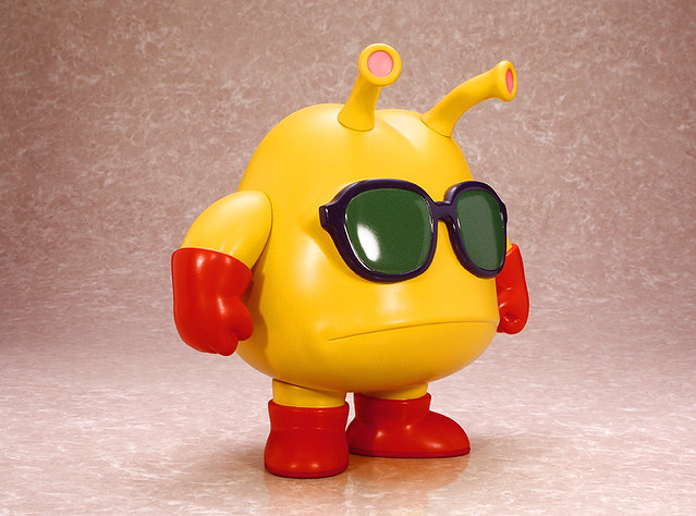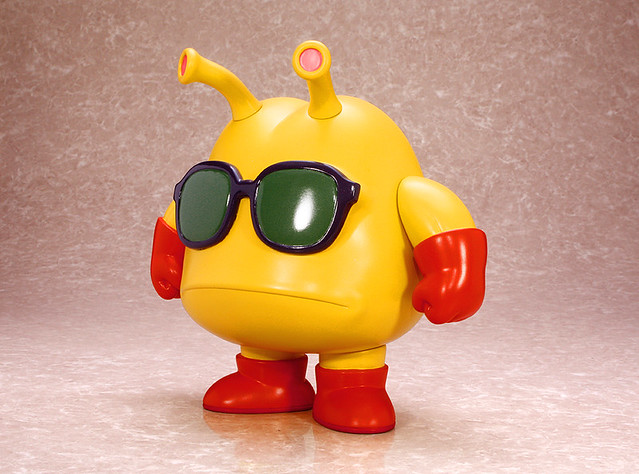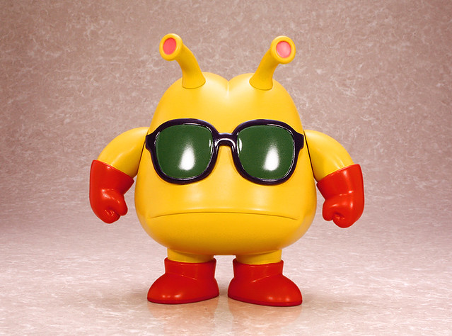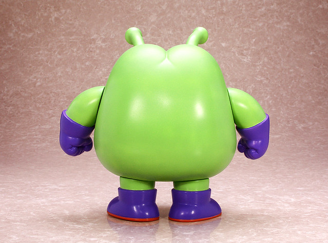 在怪博士與機器娃娃故事中笑彈大王(和僕人)是不小心來到地球的綠色外星人,他們主要的特徵是屁股長在頭上,鼻子在屁股的旁邊,耳朵則在腳掌下面,總想駕駛夢寐以求的太空船(馬桶)來返回他的星球-笑彈星球。商品原型由藤原 辰弘所製作執行,雖然是EX合金PLUS+系列但是材質是ソフトビニール(軟乙烯基)塑膠材質的,商品サイズ尺寸高約21.5公分,售價約9,800元日幣,