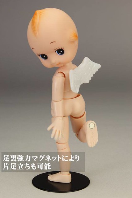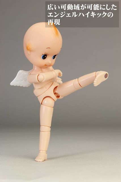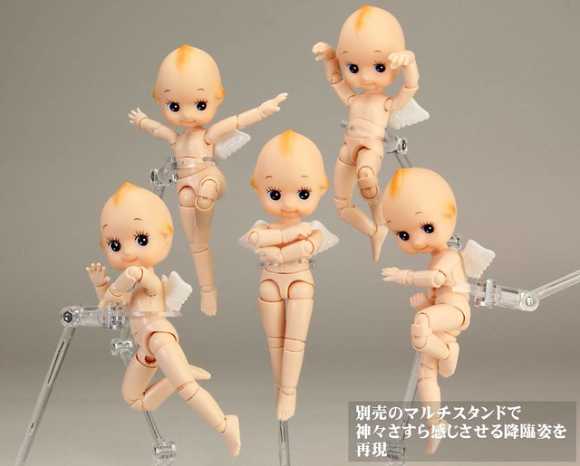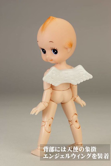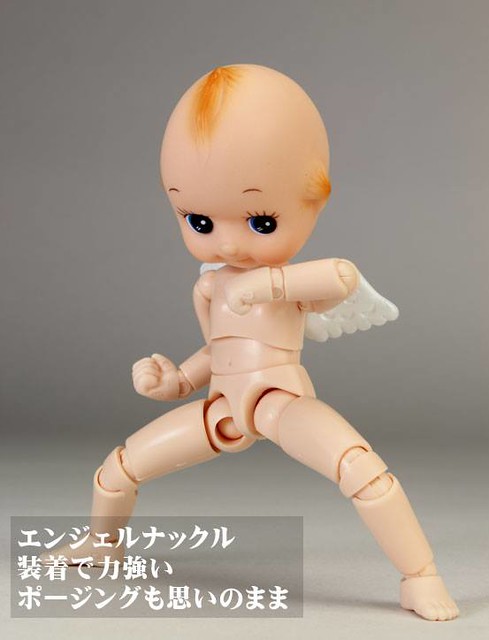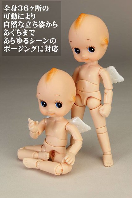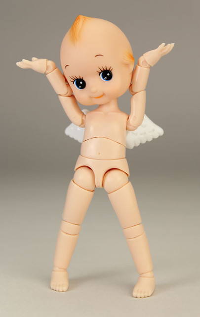 由日オビツ製作所開發出來的可動玩具商品『フル可動キューピー』全身可動 Q比小天使(暫時翻譯),以可愛Q比小天使的頭部接上全身體的可動關節,乍看以為玩家惡搞的照片,實際上是專門製作關節娃娃商品和零件等等的オビツ製作所推出的有趣商品,全身約有36處的可動關節,小天使的翅膀還可以拆卸,附有多款可以替換手首等等配件,售價約2,916元日幣,提供給喜歡可動玩具的玩具人參考。