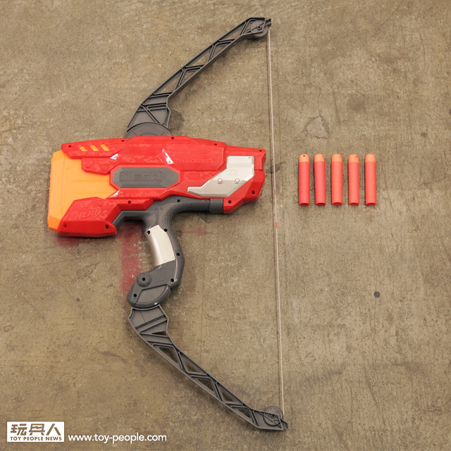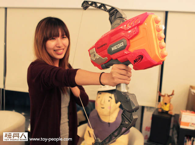 ▼ 真實拉弓感受,射程咻~咻~一下子能達30 公尺!是NERF 巨彈系列中射程最遠、準度最高的武器。除此之外,配備了巨彈哨音子彈為其另一個特殊賣點!