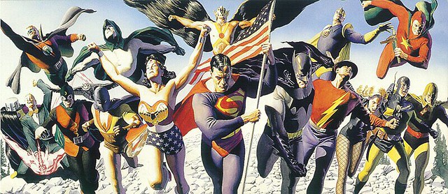 當時第二次大戰爆發,漫畫成了最主流的娛樂,DC出版社(當時為前身全國漫畫聯合出版社)想到乾脆把旗下英雄團結起來,對應戰爭的社會風氣,於是歷史上第一個超級英雄團隊 Justice Society of America(正義美國會社)就此出現,於是英雄間也開始到彼此連載客串,漫畫英雄的共同世界觀就此成形。